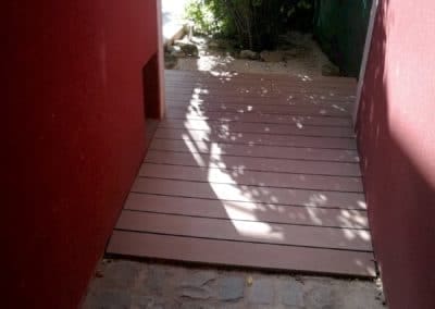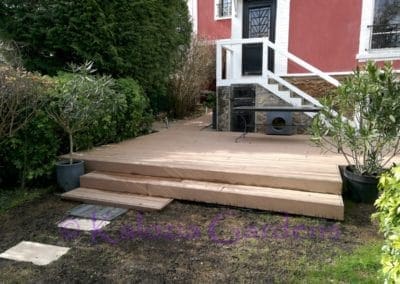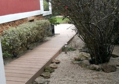 Création d’un terrasse sur jardin, passerelle de transition et rampe en composite