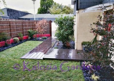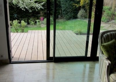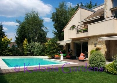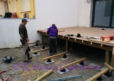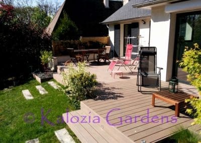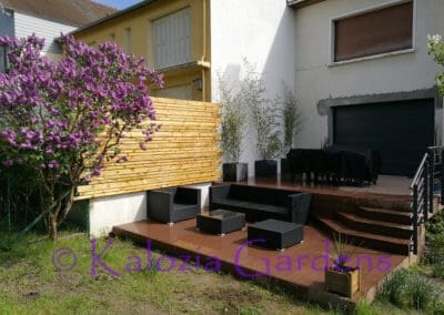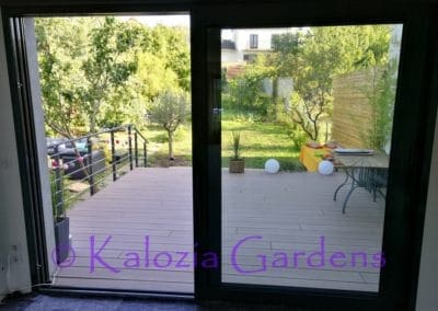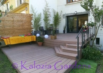 Dans notre maison, nous n’avions aucun espace extérieur à occuper convenablement. Les équipes de Kalozia ont créé de toutes pièces une terrasse attenante à notre habitation, qui fait la transition avec notre jardin. Elle est devenue le lieu où nous nous retrouvons tous aux beaux jours.